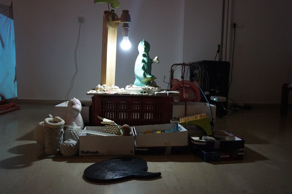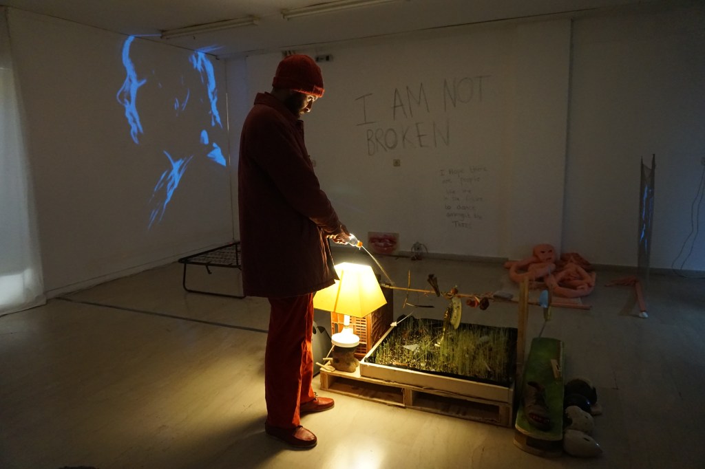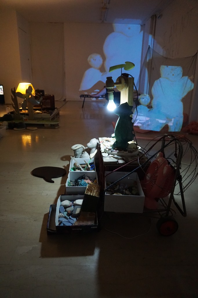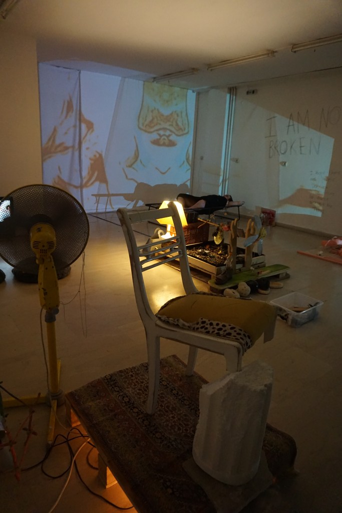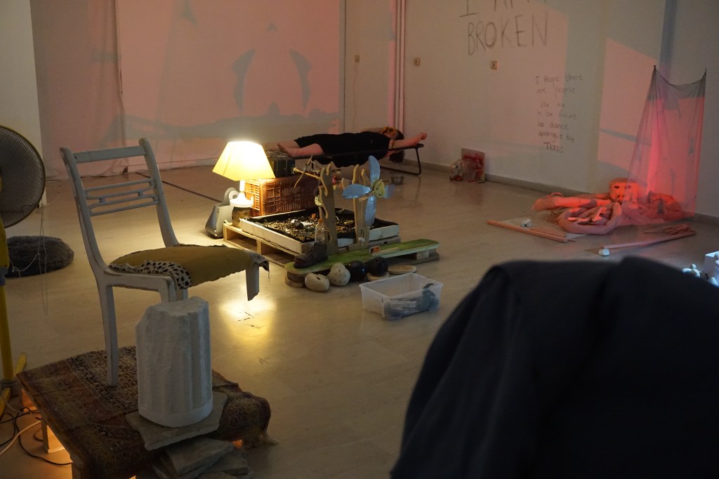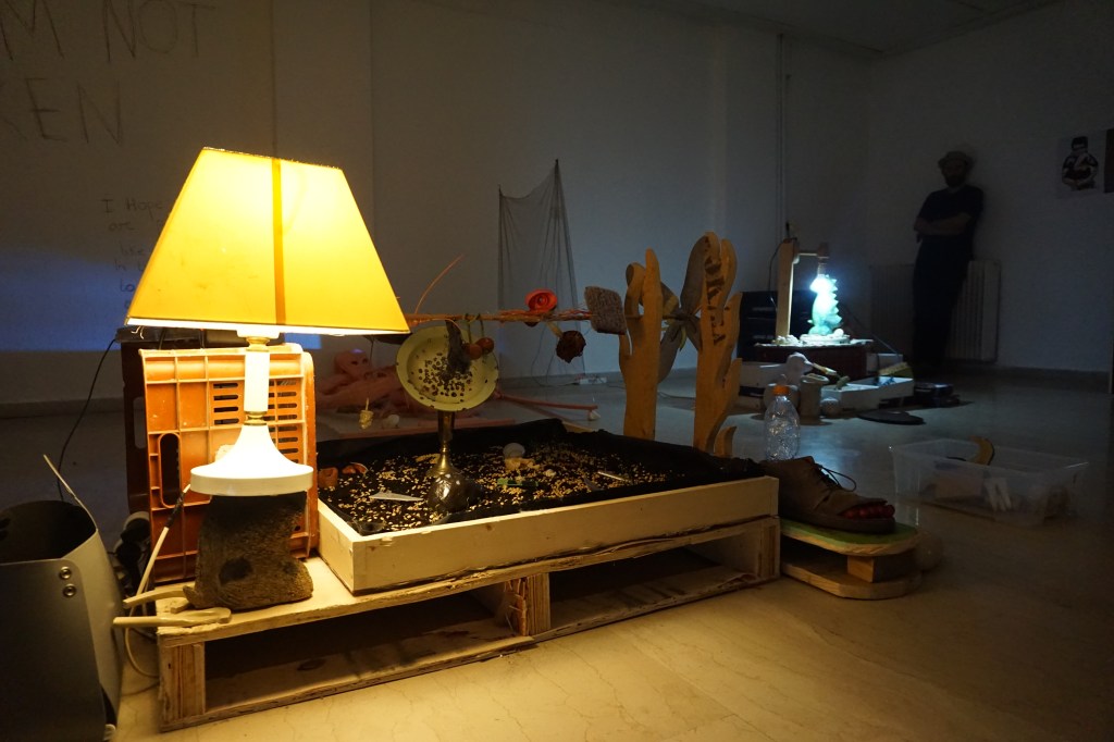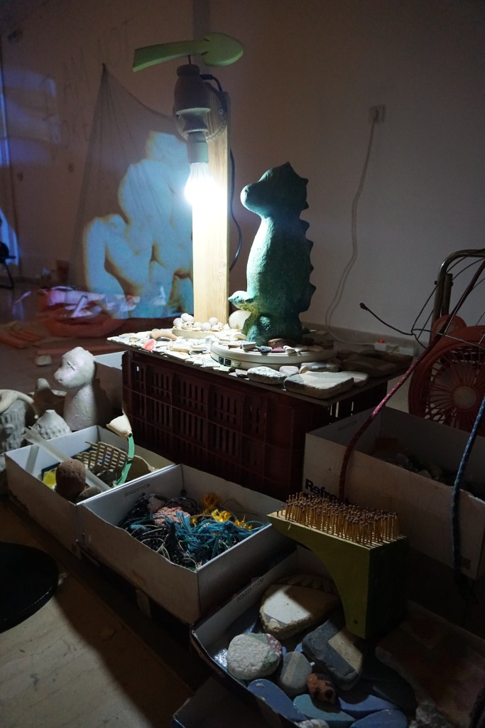 During a year of restrictions and lockdowns, Giorgos Gerontides and Rachel Parry began unravelling their art-practices, collaborating digitally across boundaries and access points. Bringing their individual practices together during their physical residency (September 2021) in the Gonzo Unit project space, the resulting exhibition is a collectively uncanny and eclectic installation. We now invite the viewer into the space to explore the duo’s cluster of ‘islands’ that embrace ritualised un-fiction traces inside sculpture, performance art, video, and sound.