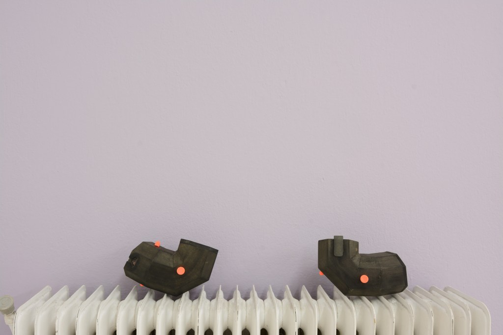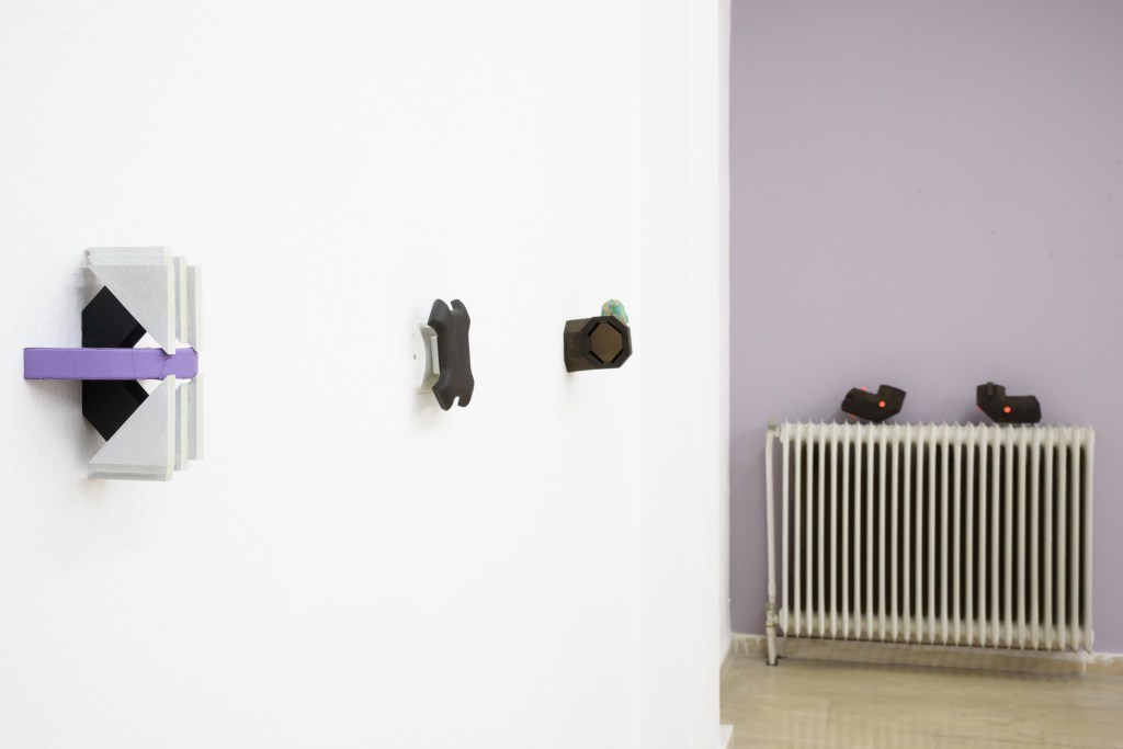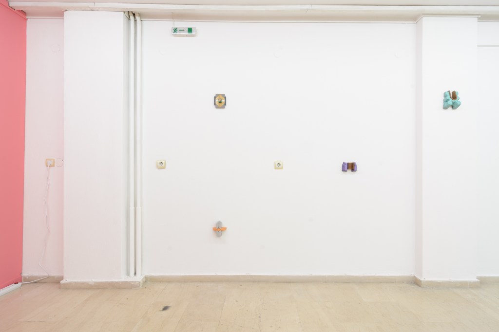 Our second residency brings together artists Dimitris Ameladiotis, Greece, and Jon Kipps, UK, following a year-long virtual dialogue. Working predominantly in sculpture, each artist has brought a series of small works to the residency which have formed the starting point of their collaboration. Over the past two weeks they have been working together to create a site-specific installation for the project space. Sensitive to each other’s practices and the particular intricacies of the space, a series of dialogues have played out between the artworks and their surroundings forming a new kind of coded visual language. Object relationships and placement, a playful exploration with colour, and modifications and additions to the exhibition space have all been integral elements of this collaboration and residency.